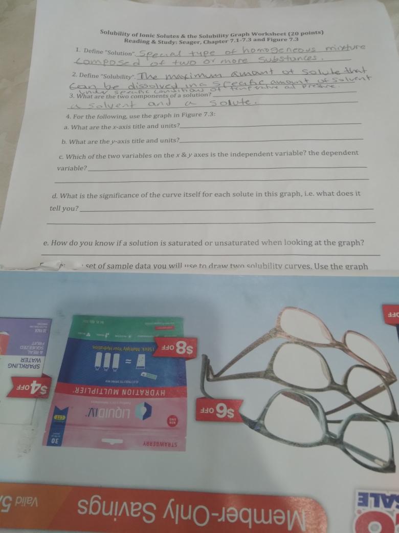 Solubility of ionic solutes & the solubility graph worksheet (20 points) reading & study: